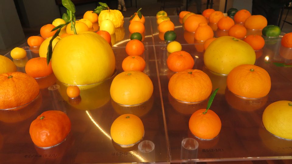 国木田独歩ゆかりの地ということで記念碑があり、他にも文学の小路やら歌碑やら、妙に文学的な香りがする。元々は実業家・大倉孫兵衛の別荘で、日清・日露戦争後に湯河原が療養地に指定された折に庭園を散歩用に開放したそうで、「散歩随意」(散歩する人は誰でも自由に庭に入ってよい)の碑なんてのも立ってます。一番奥にある『惣湯テラス』という温浴施設は入浴料が3000円もするので、おいそれとは手が出せない。箱根の天山みたいな一日中いてもいい施設ではあるみたいだけどね。熊野神社の手水はなんと温泉!すぐ近くにある町営温泉『こごめの湯』も気になるな〜。頃合いを見て玄関テラスにお邪魔してみますと、ロビー兼カフェスペースに絵本や児童文学がたくさん並び、自由に読んでいいみたい。いろんな柑橘類の模型なんてユーモラスなものまでありますよ。貸会議室やコワーキングスペースも備え、単なる観光施設ではなく市民施設といった趣きだね。さてなぜか湯河原はパンを推していてパン屋マップまであるんだそうな。欲しかったけど見当たらなかったんで公式サイトから落としてつらつらと眺め、『ちぼりスイーツファクトリー』とベーカリー『住吉屋』に足を運ぶことに決定しました。